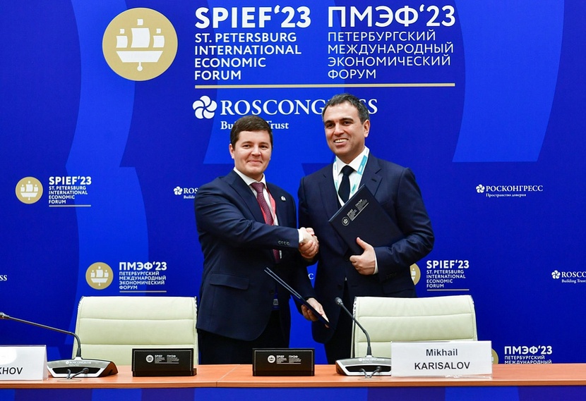 "caption": "Дмитрий Артюхов и Михаил Карисалов договорились о расширении взаимовыгодного сотрудничества.",