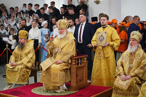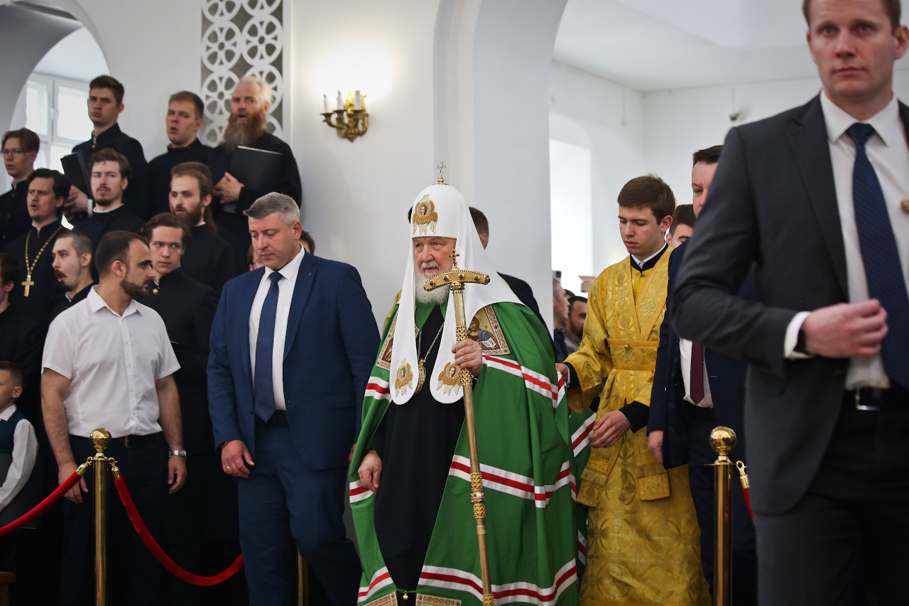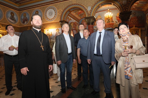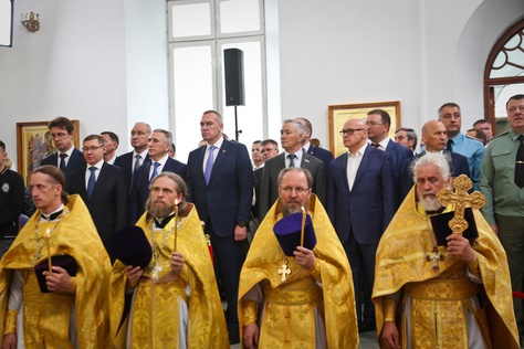 "caption": "Участники Совета Законодателей трёх регионов перед началом заседания посетили храм святой мученицы Татианы в Когалыме, освящённый патриархом Кириллом. Фото: dumahmao.ru",