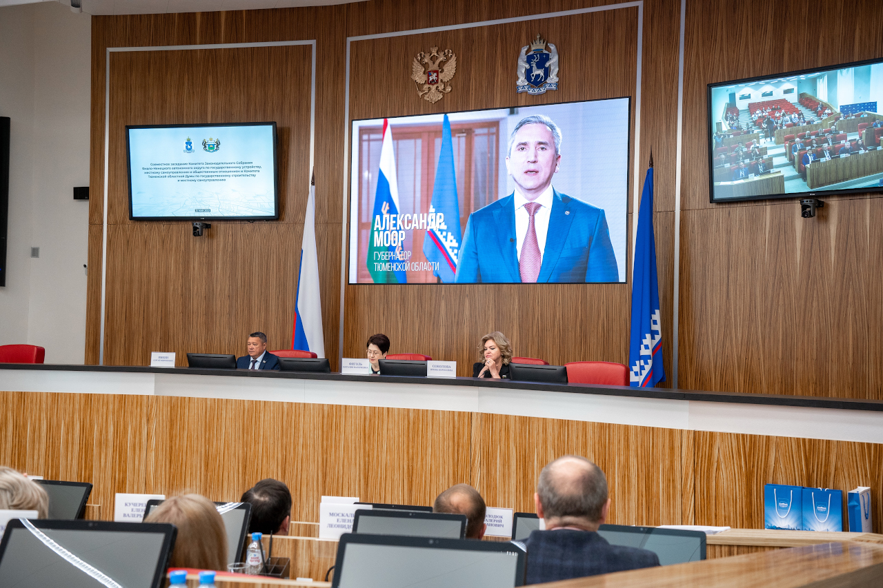 "caption": "Александр Моор приветствует участников совместного заседания комитетов Тюменской областной Думы и Законодательного Собрания Ямала.",
