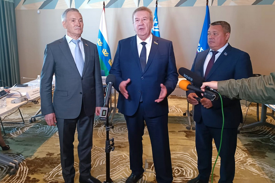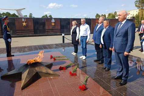 "caption": "Парламентарии Тюменской области, Югры и Ямала возложили цветы к Вечному огню в парке Победы Когалыма.",
