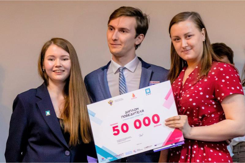 "caption": "Владимир Нефедьев и Светлана Миронова наградили победительницу конкурса Анну Сигуеву (в центре).",
