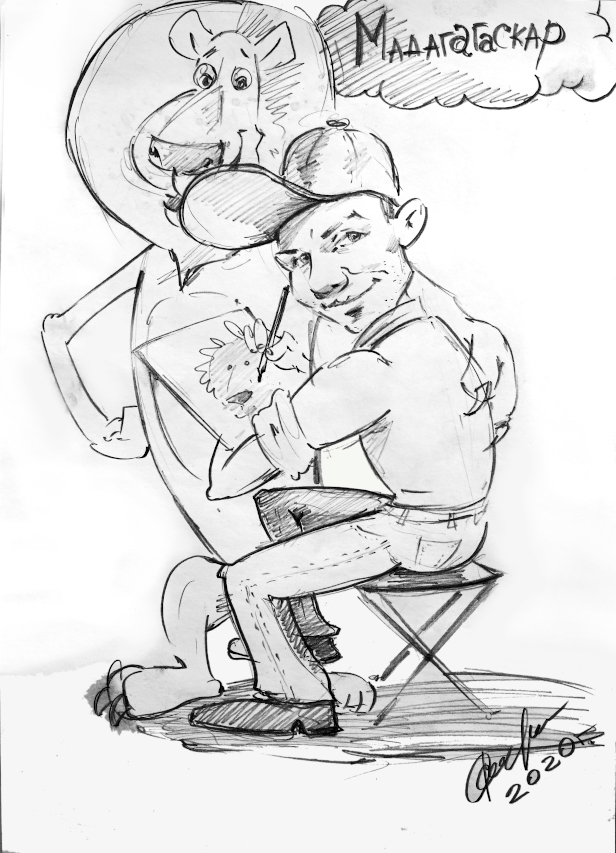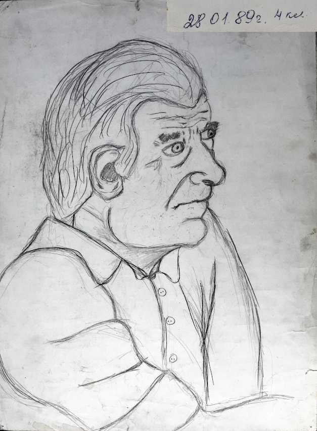 "caption": "Один из первых рисунков Андрея Романова. 1989 г.",