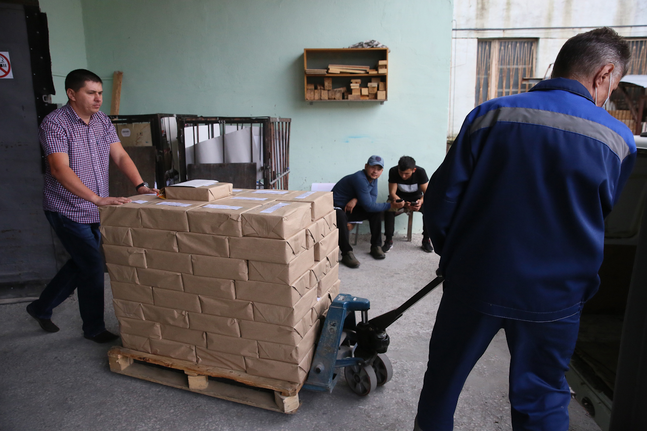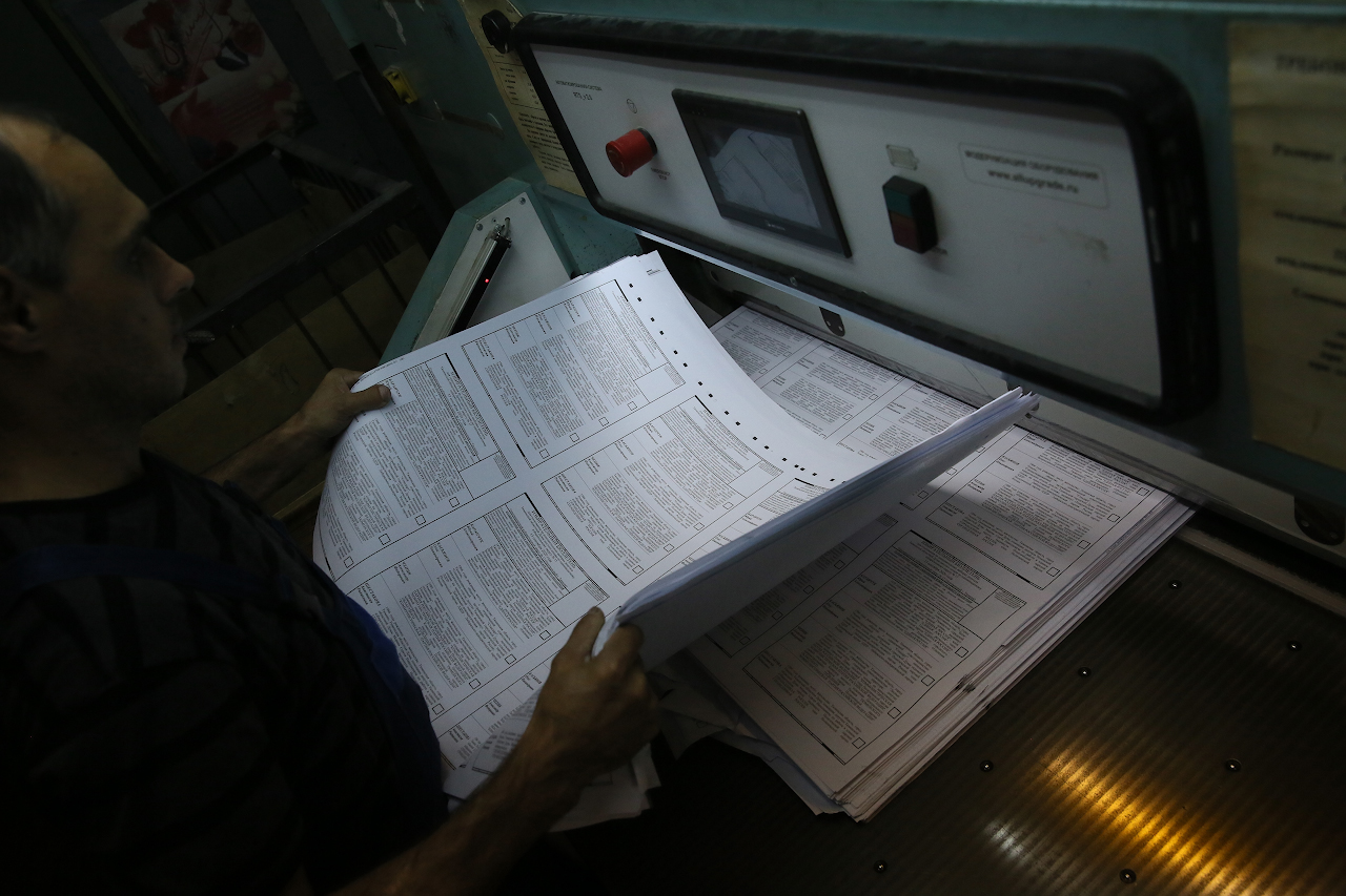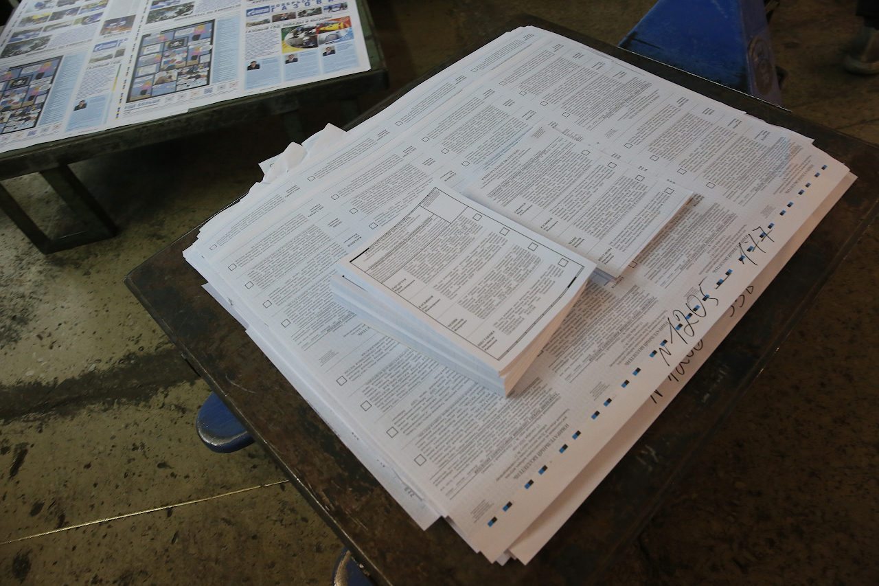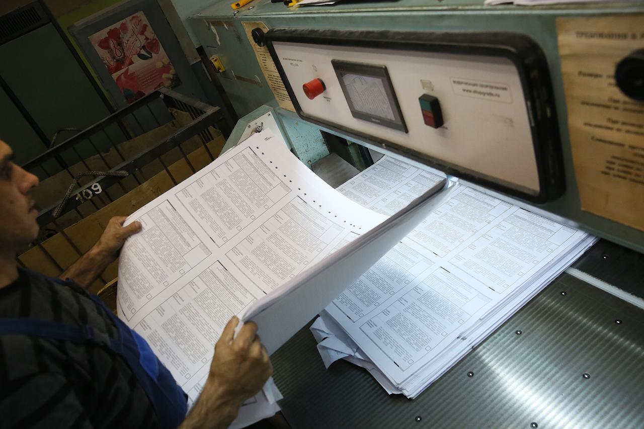 "caption": "По традиции представители областного избиркома вскрыли одну из пачек, упакованных по тысяче экземпляров, чтобы проверить качество печати.",