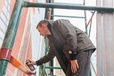 "caption": "Алексей Бархан работает на автовышке.",