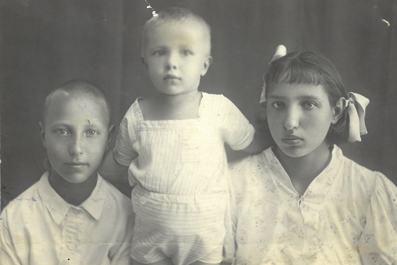 "caption": "Галя с братьями. г. Оренбург, май 1940 года",