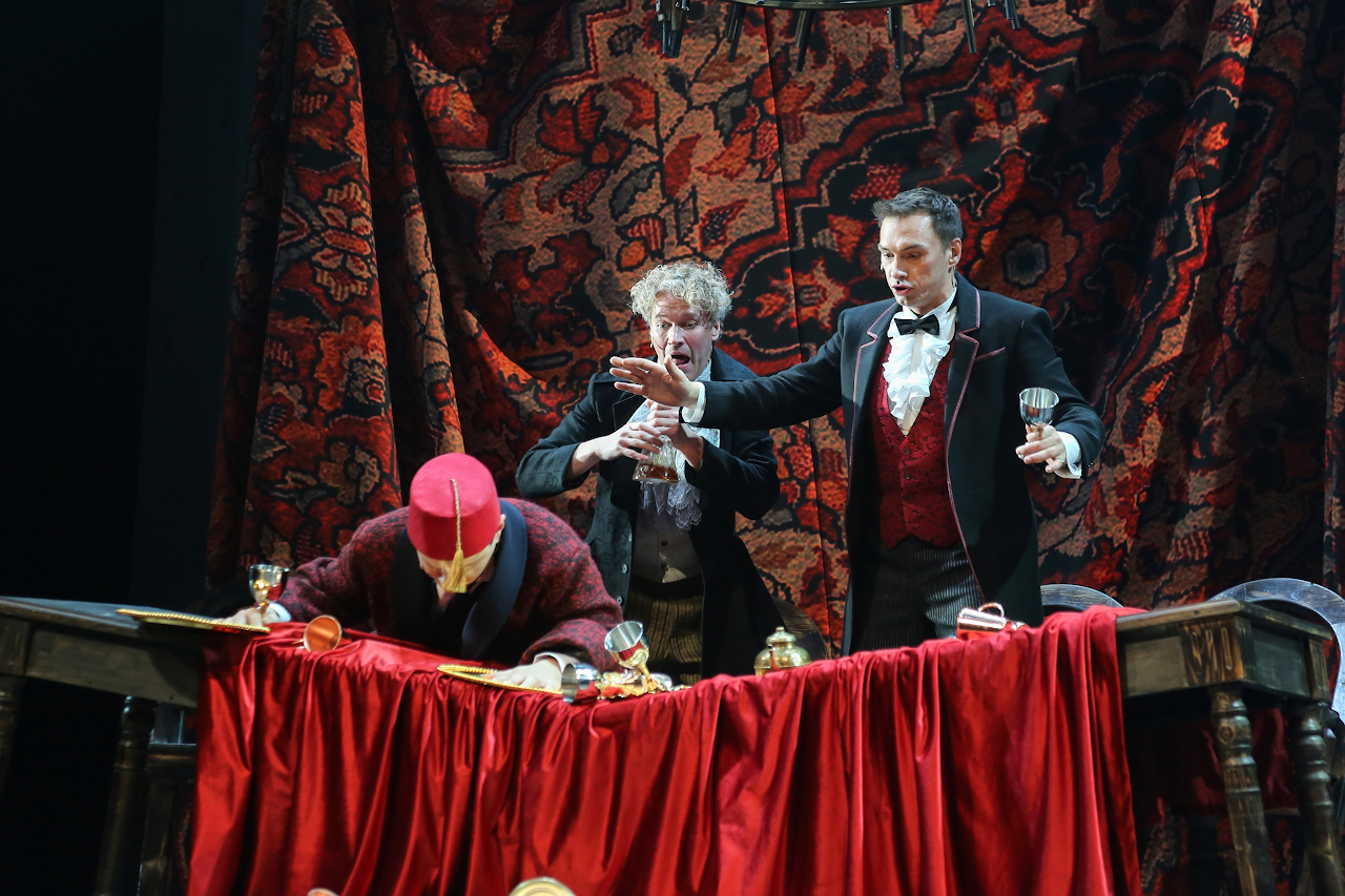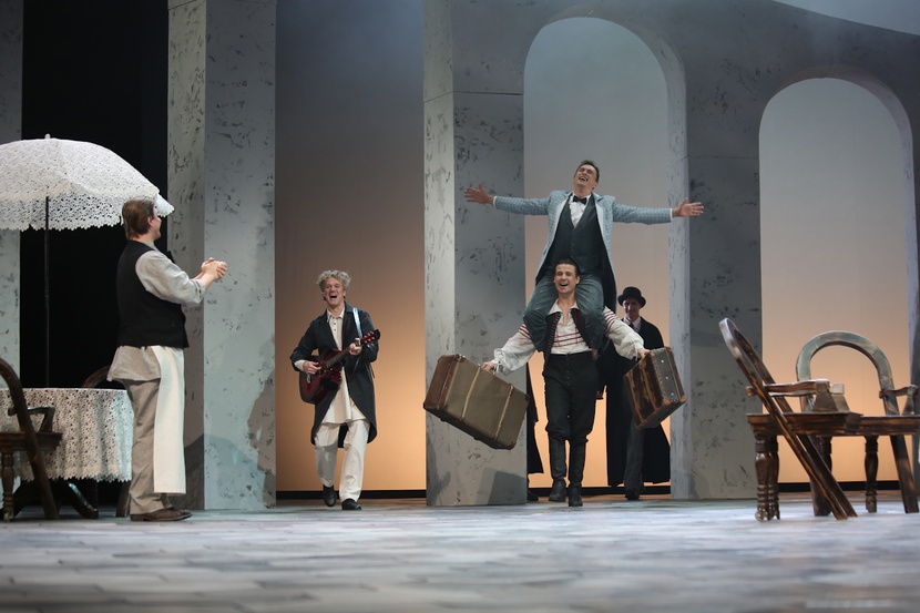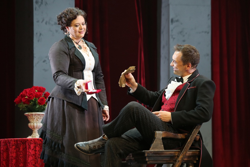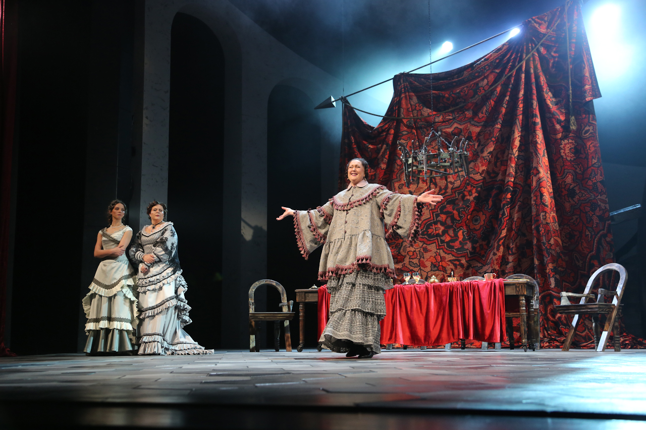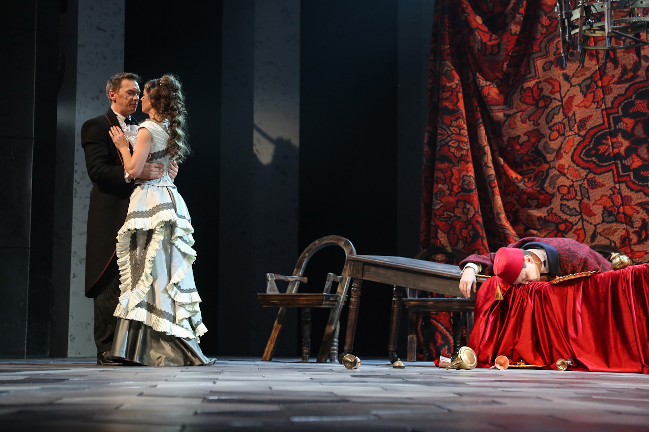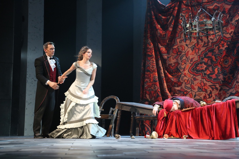 "caption": "Сцены из спектакля «Каренин А.» Фото Тюменского драматического театра.",