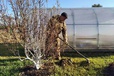 "caption": "Накрывать подготовленные каркасы для роз следует при наступлении дневной температуры -5...-7 оС. Кусты можно подокучить сухой воздухопроницаемой смесью: компост, торф и песок.",