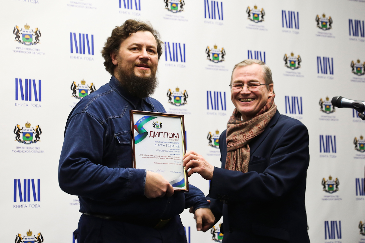 "caption": "Ученый секретарь Ишимского музейного комплекса им. Петра Ершова Геннадий Крамор и профессор кафедры истории и мировой политики Института социально-гуманитарных наук ТюмГУ, доктор исторических наук Александр Еманов",