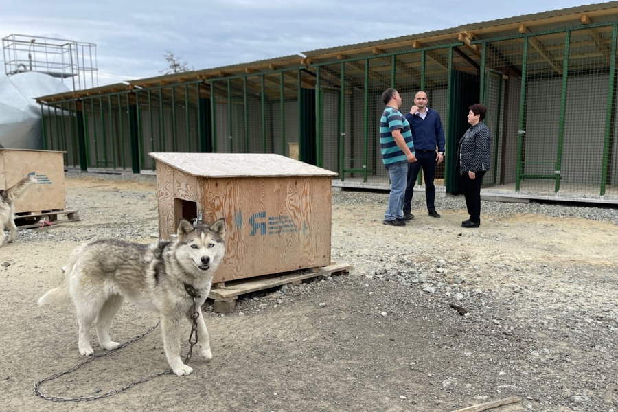 "caption": "Сергей Мордвинов и Наталия Фиголь в салехардском приюте для бездомных животных «Дорога домой». Фото пресс-службы Законодательного Собрания Ямало-Ненецкого автономного округа.",