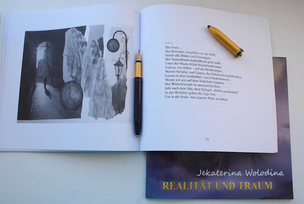 "caption": "Сборник стихов «Реальность и мечты» вышел в Германии в издательстве Генриха Дика. Фото предоставлено Екатериной Володиной",