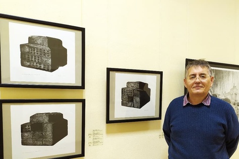 "caption": "Юрий Бычков и его триптих «Размышления 2020. Мавзолеи». Фото предоставлено Тюменским индустриальным университетом.",