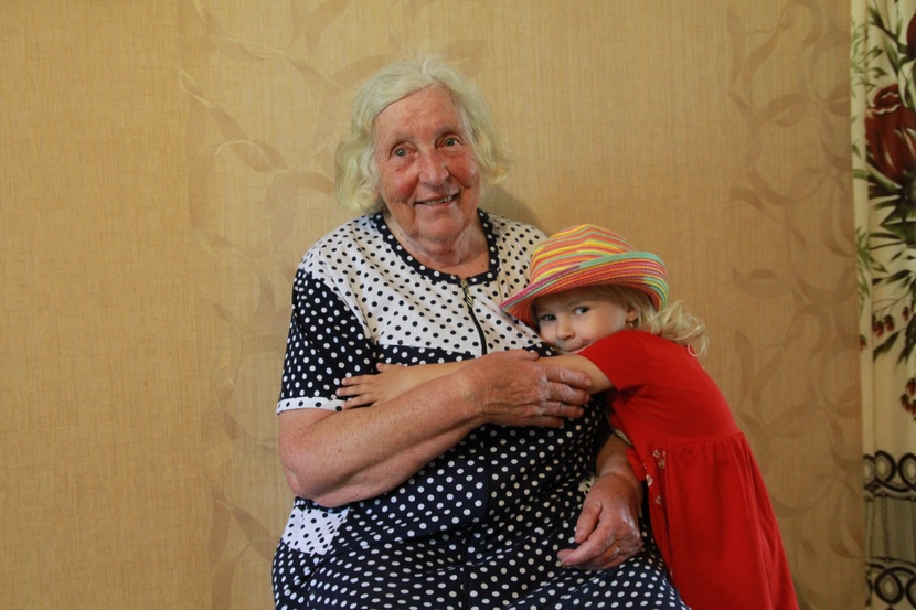 "caption": "Нина Петровна Сергеева с праправнучкой Аришей.",