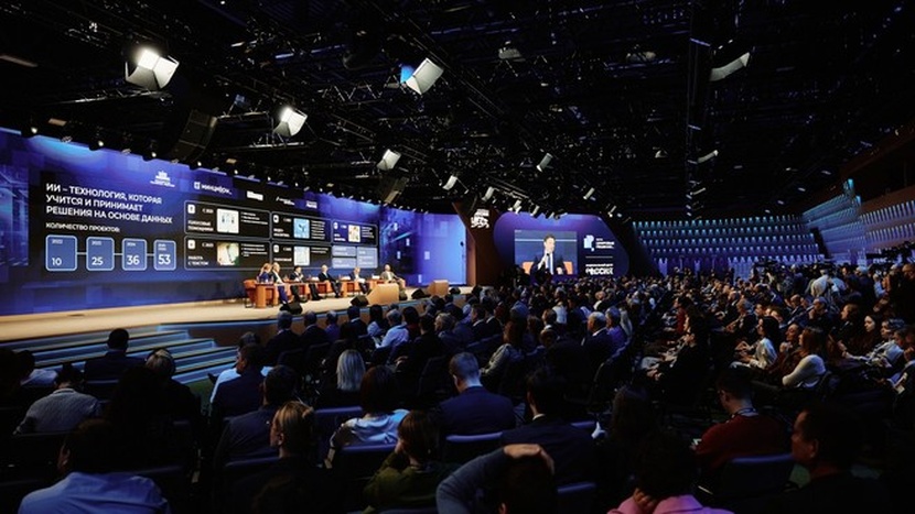 "caption": "На национальном IT-форуме \"Цифровые решения\" обсуждают перспективы внедрения искусственного интеллекта. Фото government.ru.",