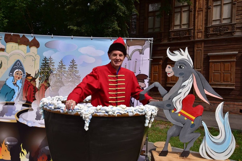 "caption": "Рыба-кит, Конёк-Горбунок и другие персонажи Ершова сошли со страниц на новый бульвар в Тюмени.",