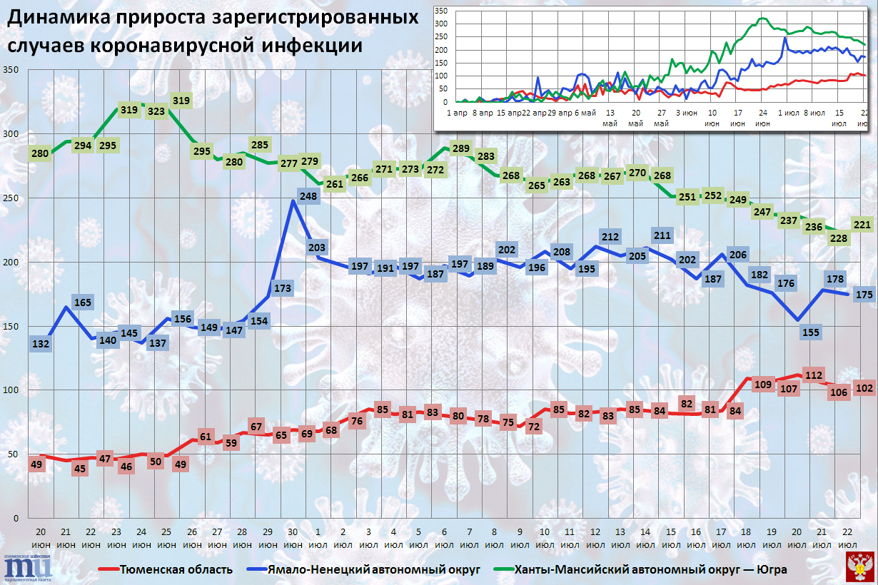 "headline": "Четыре дня подряд в Тюменской области более 100 новых больных коронавирусом",