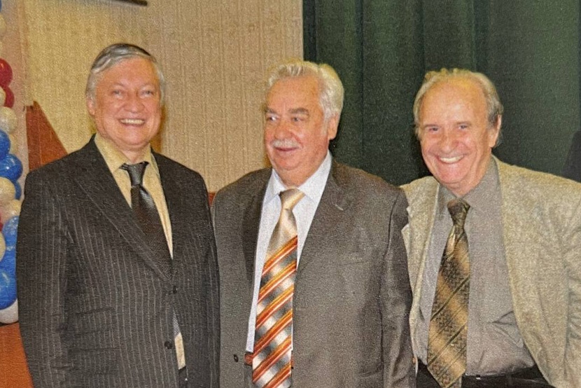 "caption": "Анатолий Карпов, Олег Биндер и Всеволод Бессараб. Фото из архива автора.",